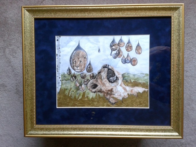 “Waiting” Colored pencil on paper with 24k gold burnishings. 6.5″ x 9″ – SOLD